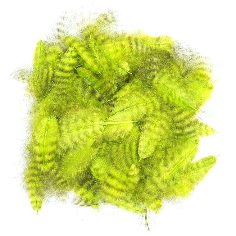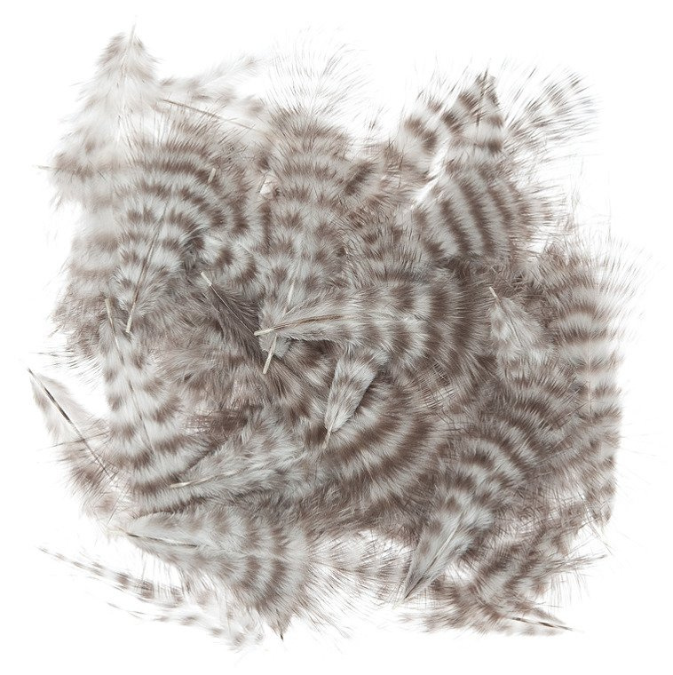The natural barring of the Grizzly Marabou looks great on wooly buggers and smaller flies. Fluffy plumes comes from chickens are a favorite material for winging lures, streamers, damsel and dragon fly nymphs, leeches etc. The fibres are very soft and mobile, producing pulsate action underwater.
