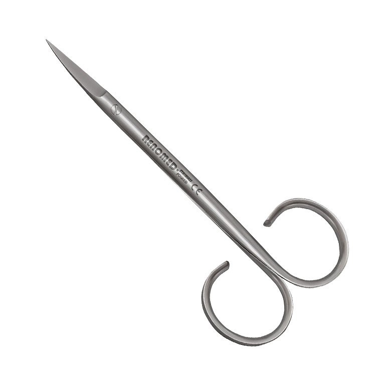 Originally designed and produced since 1981, precise scissors from high quality stainless steel, tempered and manually sharpened, length 11 cm, blade type: sharp-sharp, gently curved.