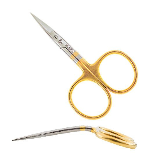 Picking flat scissors up from a flat surface is no fun, and sliding them across your bench to get them in your hand is a time killer. By placing a bend in the middle of the scissor, the problem of picking up is solved. Handles and performs just like a regular straight scissor. Excellent with natural materials and can handle most synthetics.