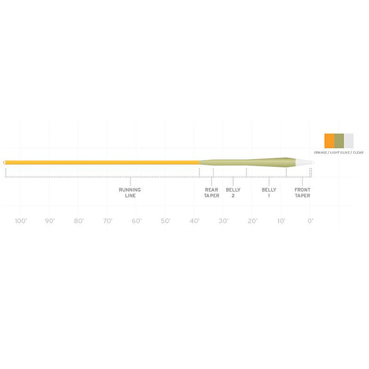 5-foot clear intermediate tip (1.25 ips) with floating running line and head for fishing flies just below the surface.