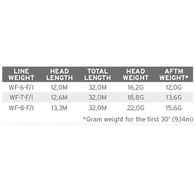 WF-8-F/I | 43.5’/13,3m | 105.0’/32,0m | 240gr/15,6g |