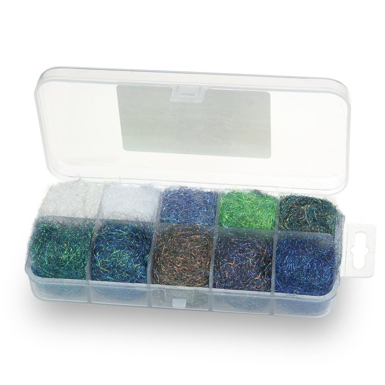 100% synthetic flashabou textured dubbing. Single tinsel is flat and between 4 and 8 centimeters long. Lite Brite Dubbing can be mixed with other dubbing materials. Its flat and glossy surface makes it perfect for speedy formation of shiny saltwater, streamer, and wet flies bodies. 1 gram each color.