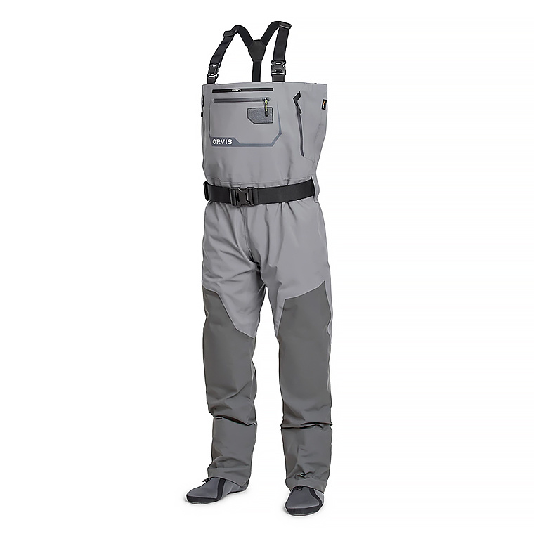 The Orvis PRO Waders are built for the professional angler whether by trade or simply by passion who will go to whatever extreme necessary to find fish. Built with an Active Fit, the PRO Waders use an extremely durable proprietary four-layer CORDURA® fabric shell in the upper and five-layer CORDURA fabric shell in the lower legs for best-in-class abrasion and puncture resistance. Low-profile seam construction and a gusseted crotch enhance movement and seam strength. Modern anatomically correct neoprene booties have less bulk with a true “sock” feel and are more comfortable inside wading boots, while the streamlined PU-reinforced mesh gravel guard covers the boot tightly and completely eliminates drag and water collection. Convenience features include an external storage pocket with YKK AquaGuard® water-resistant zipper to keep essentials dry and prevent loss. Rubberized tabs on suspenders and front pocket daisy chain for tool docking, offer multiple locations for essentials and eliminate chance of puncturing waders or losing tools. Fly patch on front pocket for quick changes and drying. Large four-way stretch power mesh interior pocket expands to fit larger items yet stays out of the way when empty. Kangaroo-style fleece-lined handwarmer pockets with YKK AquaGuard water-resistant zippers. Removable OrthoLite® 6mm knee pads use the same technology found in our PRO Boot insole for optimal comfort and rebound. Removable accessory pocket allows for quick access to gear and offers the features of a small pack. Adjustable elastic suspenders with opposing buckles for waist-high conversion. Interior hook-and-loop patch accommodates our Orvis waterproof pocket (8G3H sold separately). Waders weigh approximately 46 oz. in medium regular.