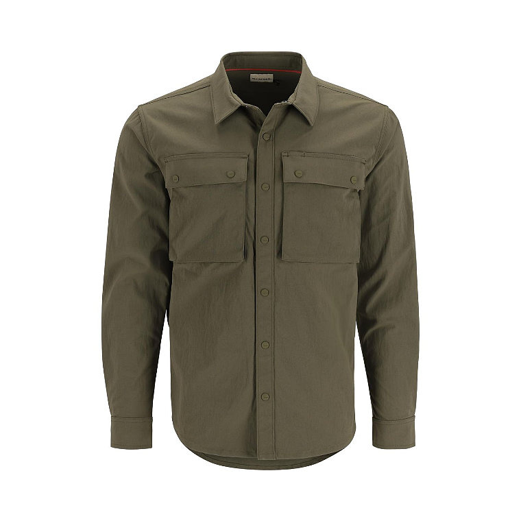 • Dual bellowed chest pockets with rubberized snap closures. Left chest pocket built with a sunglass stash.
