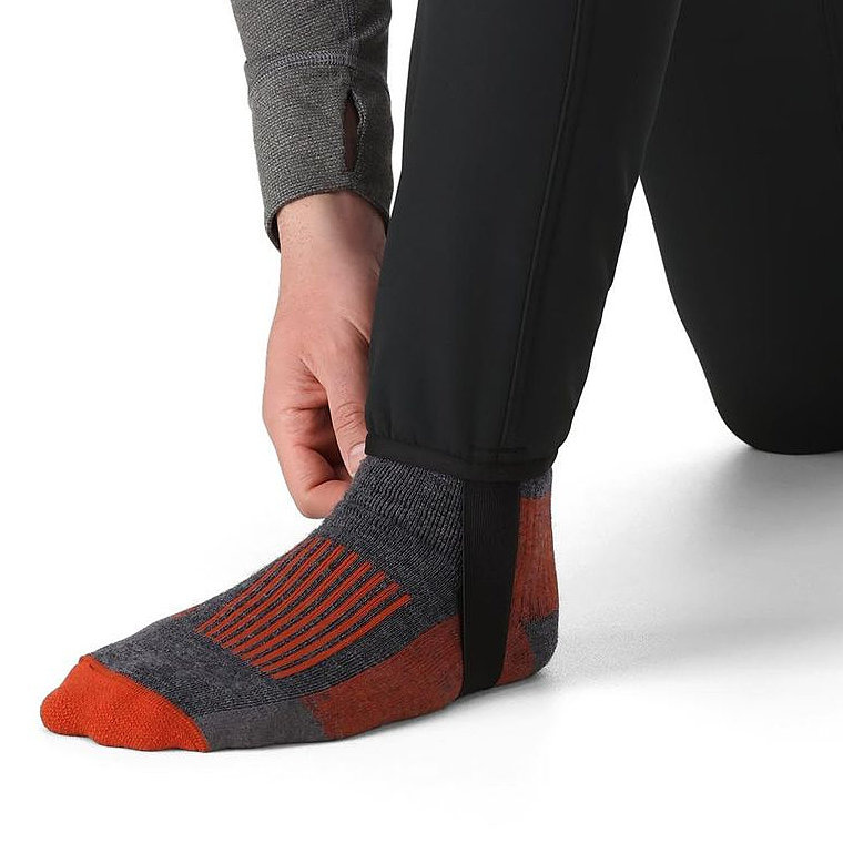 - Low-profile leg cuff and stirrups for easy layering under bibs or waders.