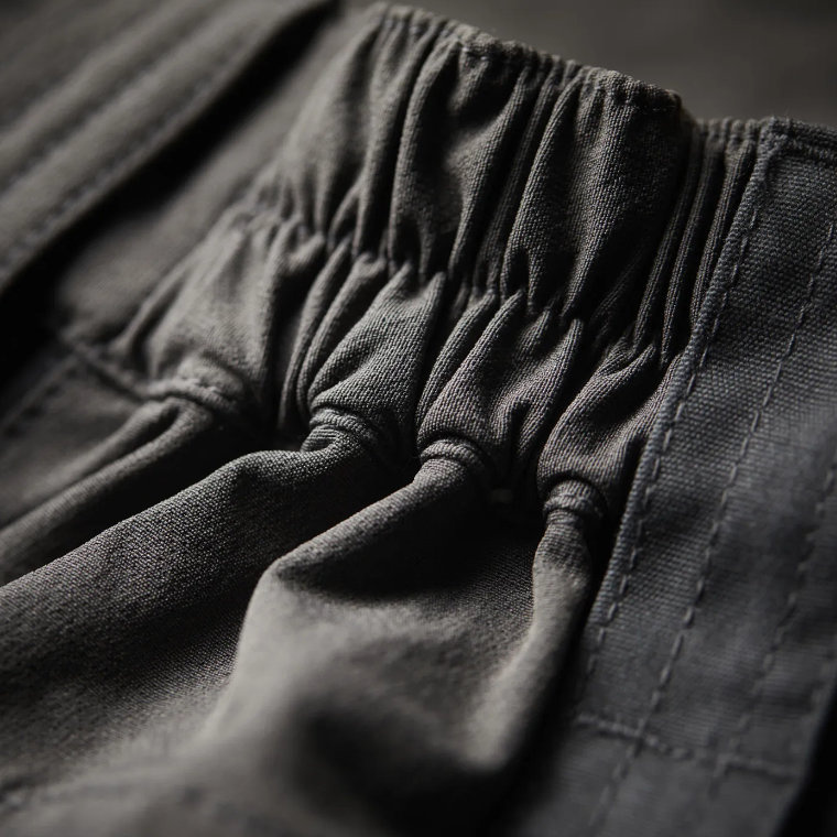 Functionalities: Elasticated waist with belt straps / One back belt strap with loop for tools / Two incline pockets / One coin/car key pocket with YKK® zipper / Two semi-box thigh pockets with YKK® zippers / One back pocket with YKK® zipper.