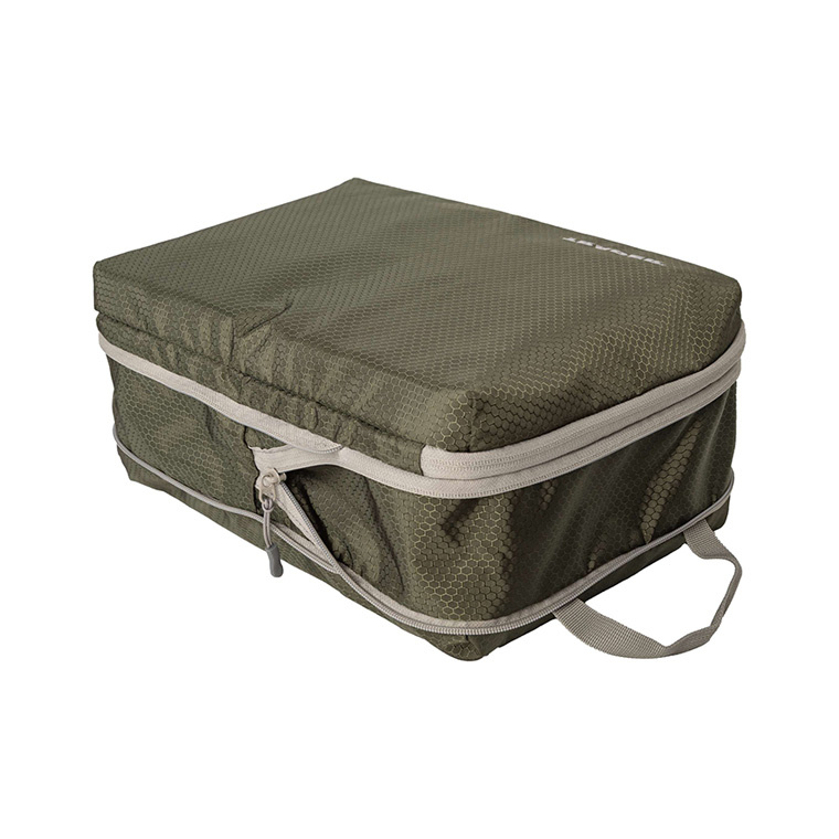 Compression travel organizer enables to tidy all things in the travel bag and decrease their volume decisively. The compression system works thanks to the additional zipper, which closes the entity and reduces the excess of the air and the empty space. Thanks to using the organizers one can separate the larger clothes from the underwear and accessories, dirty clothes from the clean ones. The organizer can reduce the luggage by 30 to 50 %. Robust yet lightweight fabric (Ripstop 300 Nylon) ensures long-term use.