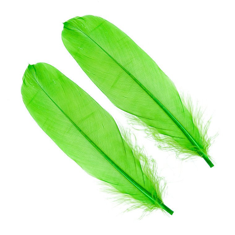Goose Shoulder feathers are used extensively in traditional wing salmon flis, dyed goose is accepted substitute for swan. The smaller feathers, dyed scarlet, are a good substitute for Ibis.Pack: 6 slected feathers.